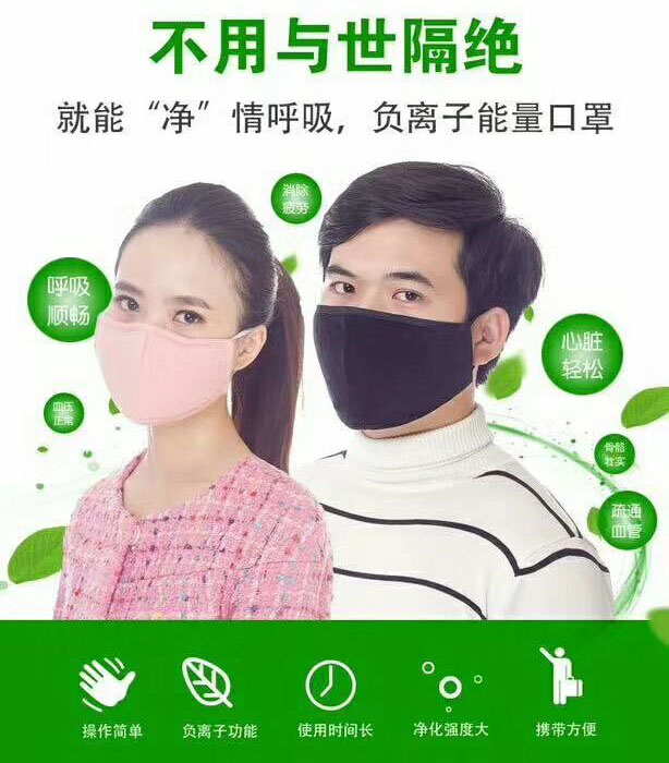 环巢负氧离子能量口罩,释放出高浓度的负氧离子,长寿者居住地空气中含有负氧离子3000多,带着含负氧离子高的口罩犹如生活在森林空气中.负氧离子可以让空气中的粉尘自行掉落,呼吸顺畅。口罩没有保质期,一年内可以重复清洗使用。同时可以控制鼻炎,改善鼻炎状态。